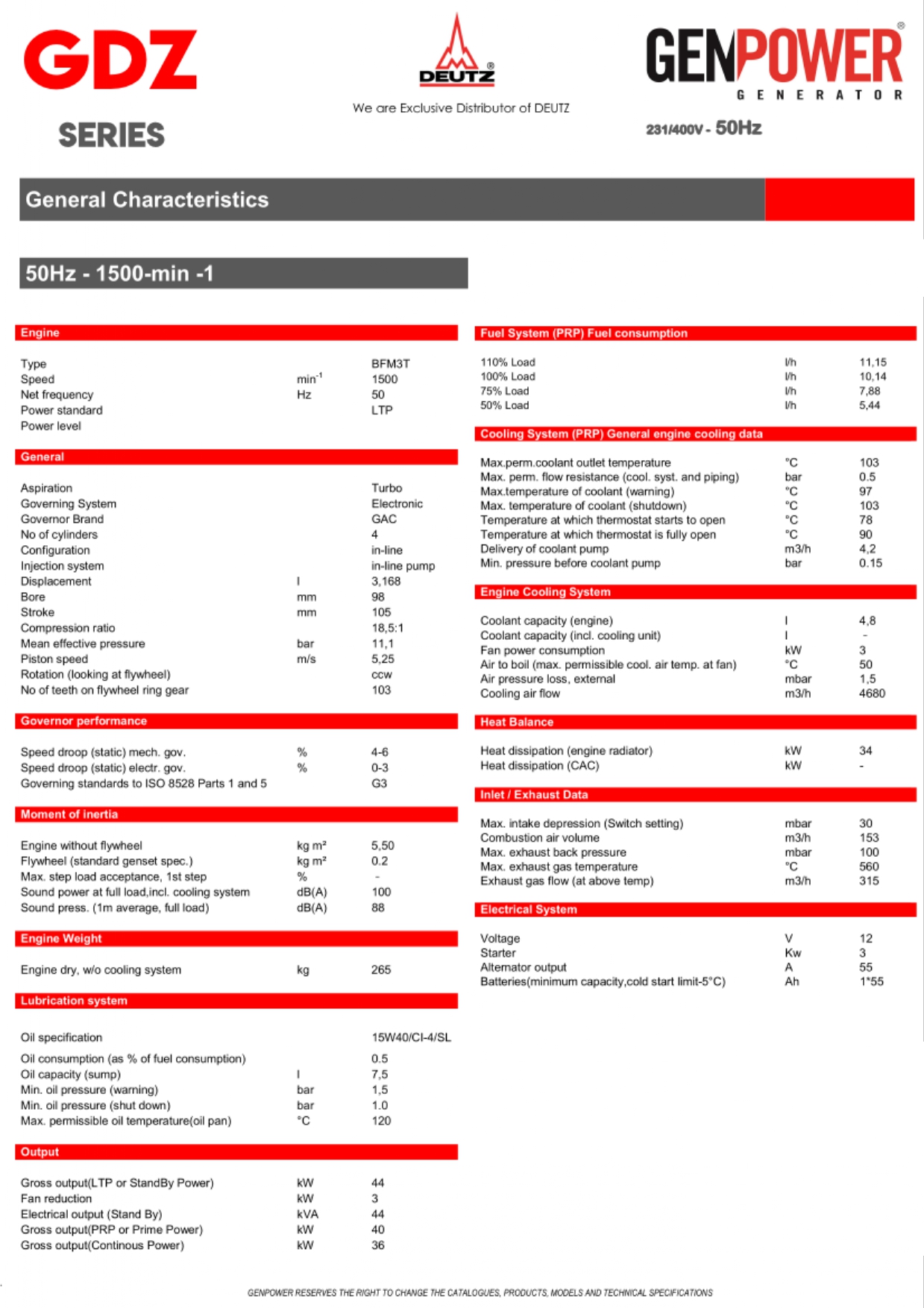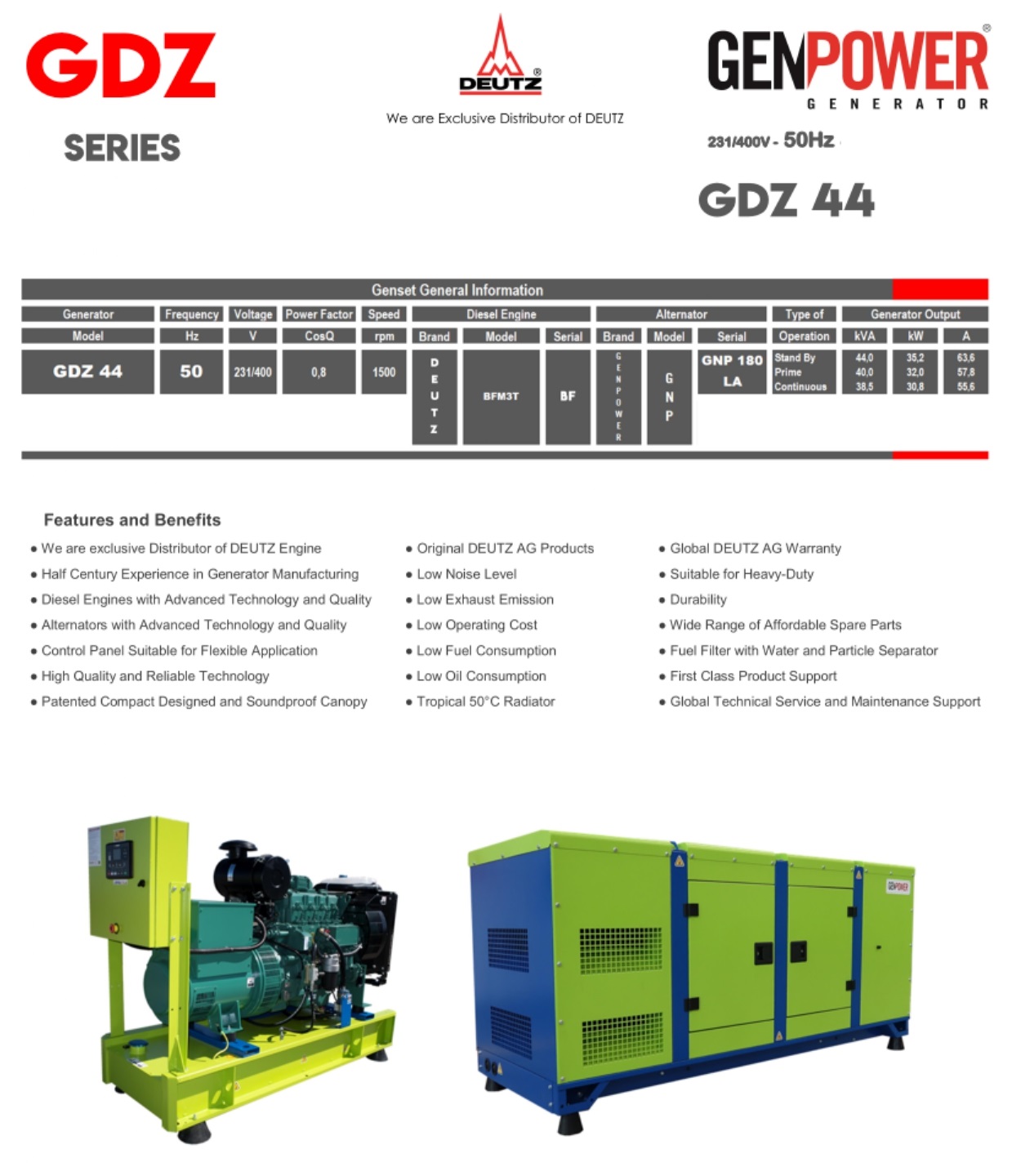 Генератор дизельний 35,2 кВт GenPower GDZ 44 Туреччина