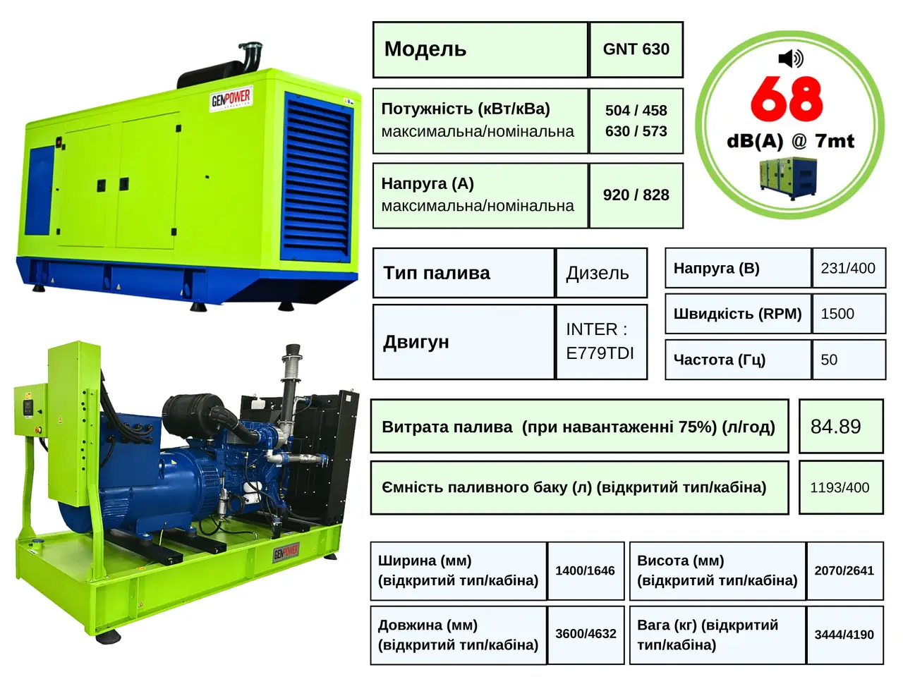 Генератор дизельний 504 кВт GenPower GNT 630 Туреччина