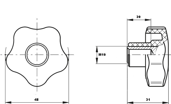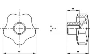 Ручка-зірочка 9005 РА, отвір на виліт М10